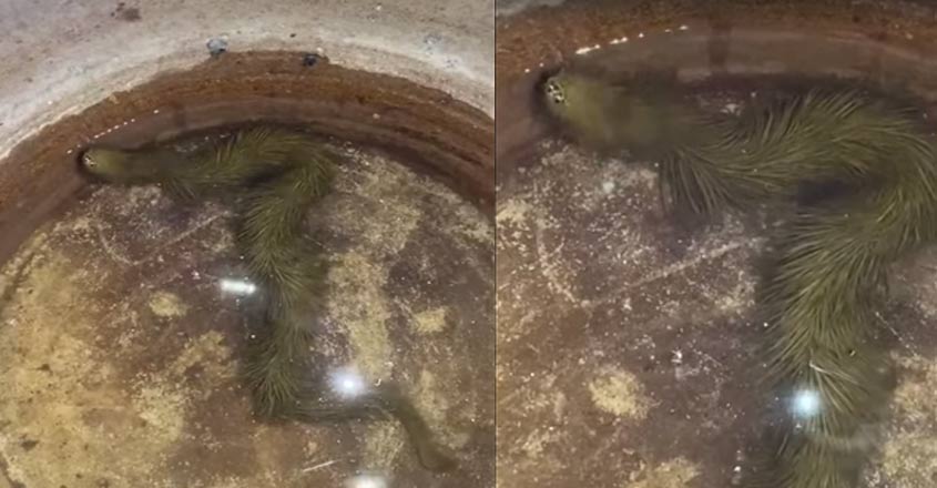 അധികൃതരെ വിവരമറിയിക്കുകയും അവർ എത്തുന്നതു വരെ ജീവിയെ ഒരു പാത്രത്തിൽ വെള്ളം നിറച്ച് സൂക്ഷിക്കുകയും ചെയ്തു. ചെറിയ മീനിനെ കഴിക്കാനും നൽകി. ഇതിനിടെ മറ്റൊരാൾ ഇതിന്റെ ചിത്രങ്ങളും വിഡിയോയും സമൂഹമാധ്യമത്തിൽ പങ്കുവച്ചു. ഒരുപക്ഷേ ഇത് വെള്ളത്തിൽ ജീവിക്കുന്ന തരം പാമ്പായിരിക്കാമെന്നും ഇതിന്റെ ശരീരത്തിൽ കാണുന്നത് ചെതുമ്പലിൽ പിടിച്ചിരിക്കുന്ന പായലാകാം എന്നുമാണ് വിദഗ്ദരുടെ കണ്ടെത്തല്. ചെതുമ്പൽ കൊഴിയുന്നതിനൊപ്പം പാമ്പിന്റെ ശരീരത്തിൽ കാണുന്ന പായലും പോകുമെന്നും അവർ വ്യക്തമാക്കുന്നു. ഇവ സാധാരണയായി കാണപ്പെടുന്നത് തെക്കുകിഴക്കൻ ഏഷ്യയിലാണ്. ചെറിയ മീനുകളും തവളകളുമാണ് ഇവയുടെ ഭക്ഷണം.