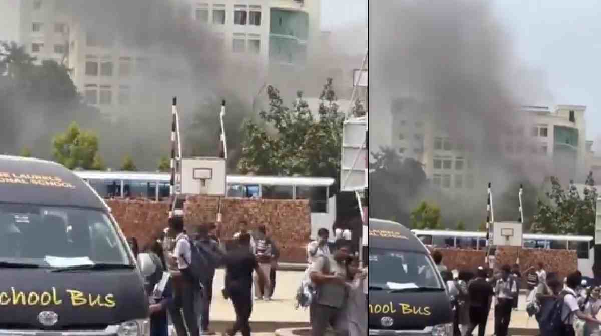 A Bangladesh Air Force training jet crashed into the Milestone School and College building in Dhaka on Monday, killing one person and injuring at least 13 others, including students. The aircraft, identified as a Chinese-made F-7 BGI, fell during a training exercise. Emergency footage shows smoke billowing from the scene as rescuers rushed to assist the wounded. The accident has sparked serious concerns about air safety protocols near populated areas. Authorities have launched an investigation into the crash, which occurred while students were reportedly attending classes.