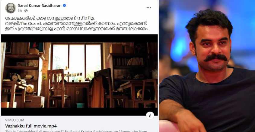 സിനിമയുടെ റിലീസുമായി ബന്ധപ്പെട്ട് വിവാദങ്ങള് പുകയുന്നതിനിടെ ‘വഴക്ക്’ സിനിമയുടെ പ്രിവ്യു കോപ്പി ലിങ്ക് പുറത്തുവിട്ട് സംവിധായകൻ സനൽകുമാർ ശശിധരൻ. തന്റെ ഫെയ്സ്ബുക്ക് അക്കൗണ്ടിലൂടെയാണ് സനൽകുമാർ ശശിധരൻ വിമിയോയിൽ അപ്ലോഡ് ചെയ്ത സിനിമയുടെ പ്രിവ്യു കോപ്പി വിഡിയോ ലിങ്ക് പുറത്തുവിട്ടത്.