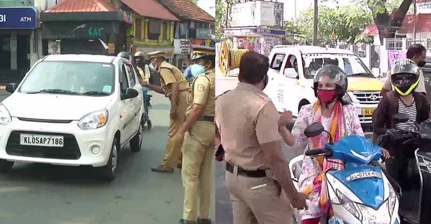 ലോക്ഡൗണിന് സമാനമാണ് ഇന്നത്തെയും നാളത്തെയും സ്ഥിതിയെന്ന അറിയിപ്പുണ്ടായിട്ടും കൊച്ചി നഗരത്തിലേക്കുള്ള വാഹനങ്ങളുടെ വരവില് ഒരു കുറവുമുണ്ടായില്ല. പരിശോധന ശക്തമായിരുന്നെങ്കിലും ബഹുഭൂരിപക്ഷം വാഹനയാത്രക്കാരും സത്യവാങ്മൂലവുമായി എത്തിയതോടെ പൊലീസ് നിസ്സഹായരായി. ഇതിനിടയില് കോവിഡ് മാനദണ്ഡം ലംഘിച്ച് യാത്രക്കാരെ കുത്തിനിറച്ച ടാക്സികള്ക്കും ഇരുചക്രവാഹന യാത്രക്കാര്ക്കും എതിരെ പൊലീസ് കേസെടുത്തു. കടവന്ത്രയില് കൂട്ടംകൂടിയ ഇതരസംസ്ഥാന തൊഴിലാളികളെ മുന്നറിയിപ്പ് നല്കി പൊലീസ് പിരിച്ചുവിട്ടു. കെ.എസ്.ആര്.ടി.സി സ്വകാര്യ ബസുകള് സര്വീസ് നടത്തിയെങ്കിലും തിരക്കുണ്ടായില്ല. കോട്ടയം ജില്ലയിൽ നഗര ഗ്രാമ വ്യത്യാസമില്ലാതെ പൊലീസ് പരിശോധന കർശനമാക്കി. മതിയായ കാരണങ്ങളില്ലാതെ പുറത്തിറങ്ങിയ അൻപതിലേറെ പേർക്കെതിരെ കേസെടുത്തു. യാത്രക്കാരുടെ എണ്ണം കുറവായിട്ടും ജില്ലയില് അറുപത് ശതമാനത്തിലേറെ കെഎസ്ആർടിസി സർവീസുകൾ നടന്നപ്പോള് സ്വകാര്യബസുകളും സർവീസ് വളരെ ചുരുങ്ങി.