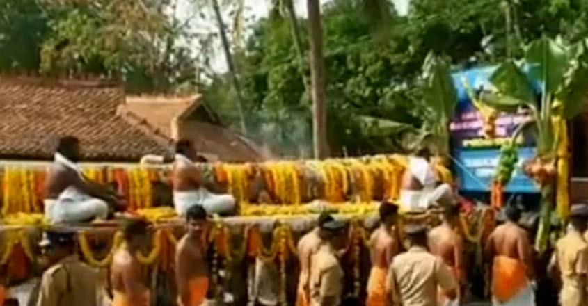 ശ്രീപത്മനാഭസ്വാമി ക്ഷേത്രത്തിലെ ഉപദേവാലയമായ തിരുവാമ്പാടി ശ്രീകൃഷ്ണസ്വാമി ക്ഷേത്രത്തിലെ കൊടിമരം എത്തിച്ചു. കൊടിമര ഘോഷയാത്രക്ക് ഭക്തിനിര്‍ഭരമായ വരവേല്‍പ് നല്‍കി.