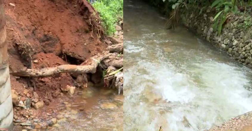 Jobi and his family, a resident of Pathanamthitta Vaiyatupuzha, are in fear after the protection wall and well of the house collapsed.