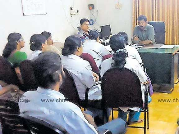 ഹെഡ് നഴ്സനെതിരെ മോശമായ പരാമർശം നടത്തിയ ഡോക്ടർക്കെതിരെ നടപടി സ്വീകരിക്കണമെന്നാവശ്യപ്പെട്ടു ആശുപത്രി സൂപ്രണ്ട് ഡോ. കെ.എ.മനോജിനെ നഴ്സുമാർ ഘരോവോ ചെയ്തു.വകുപ്പു തല നടപടിക്കു ശുപാർശ ചെയ്യുമെന്നു സൂപ്രണ്ട് അറിയച്ചിതിനെ തുടർന്നാണ് നഴ്സുമാർ സമരം നിർത്തിയത്. ഡപ്യൂട്ടി ഡിഎംഒയെ ഉടൻ തന്നെ വിവരം അറിയിച്ചതായും സൂപ്രണ്ട് ഡോ. കെ.എ.മനോജ് പറഞ്ഞു. ആശുപത്രിയുടെ പ്രവർത്തനം തടസ്സപ്പെടുത്താതെയായിരുന്നു നഴ്സുമാരുടെ ഉപരോധ സമരം.