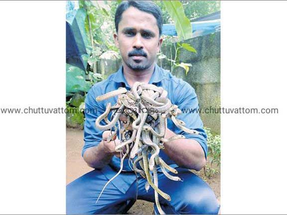 വീടിനോടു ചേർന്ന മതിലിൽ പാമ്പും 50 മുട്ടകളുമുണ്ടെന്ന വിവരം അറിഞ്ഞു പുതുനഗരത്ത് എത്തിയ നാസറിന്റെ പരിശോധനയിൽ പാമ്പിനെ കണ്ടെത്തിയില്ലെങ്കിലും 47 മുട്ടകളും സഞ്ചിയിലാക്കി കൈപ്പുറത്തെ വീട്ടിലെ ഇൻക്യുബേറ്ററിൽ അടയിരുത്തി.