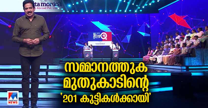 സ്കൂൾ വിദ്യാർഥികൾക്കായുള്ള കേരളത്തിലെ ഏറ്റവും വലിയ ക്വിസ് മലയാള മനോരമ– സാന്റാമോണിക്ക ബിഗ് ക്യു ചാലഞ്ച് ജനസേവനത്തിന്റെ പുതിയ മാനങ്ങള്‍ തീര്‍ക്കുന്നു. കിട്ടുന്ന തുകയുടെ പകുതി സന്നദ്ധ പ്രവർത്തനങ്ങൾക്കായിരിക്കും ഉപയോഗിക്കുക. സ്കൂൾ കുട്ടികൾക്ക് വേണ്ടി നടത്തുന്ന ഏറ്റവും വലിയ ക്വിസ് മൽസരം. ജയിച്ചു കിട്ടുന്ന സമ്മാനത്തുക മുതുകാടിന്റെ '201 കുട്ടികൾക്കായി' മാറ്റിവെക്കുമെന്ന് മത്സരിക്കുന്ന കുട്ടികൾ. വിഡിയോ കാണാം.
