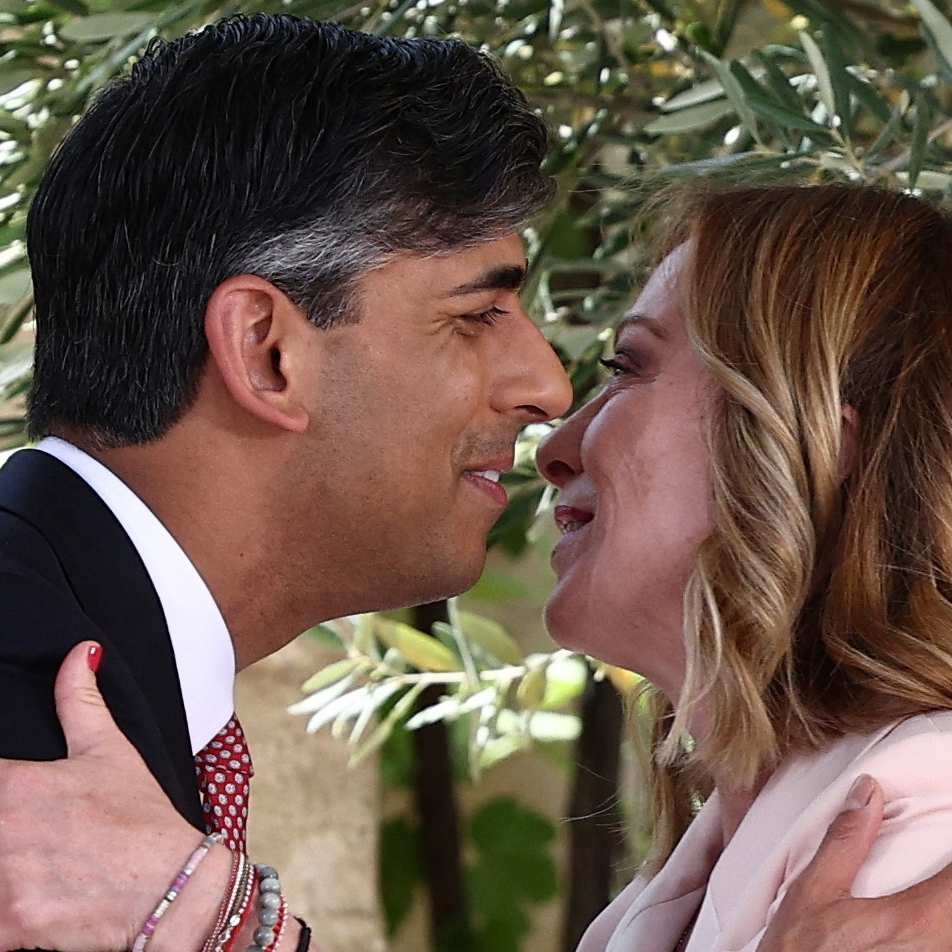 ഋഷി സുനകിനെ ആലിംഗനം ചെയ്ത് സ്വീകരിച്ച് ഇറ്റാലിയന് പ്രധാനമന്ത്രി മെലോണി