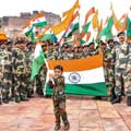 ലേയില് പതാകയുമേന്തി സൈന്യം