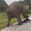 ചെടികൾക്കിടയിലൂടെ ഓടിയ യുവാവ് റോഡിലേക്ക് കയറിയപ്പോഴേക്കും തെന്നിവീണു. ഈ സമയംകൊണ്ട് ആന പിന്നിലെത്തി നടുഭാഗത്ത് ചവിട്ടി