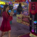ഒരു പ്ലേ സോണിലെ പഞ്ചിങ് മെഷീനിൽ താരം ശക്തമായി ഇടിക്കുന്നതാണ് വിഡിയോ